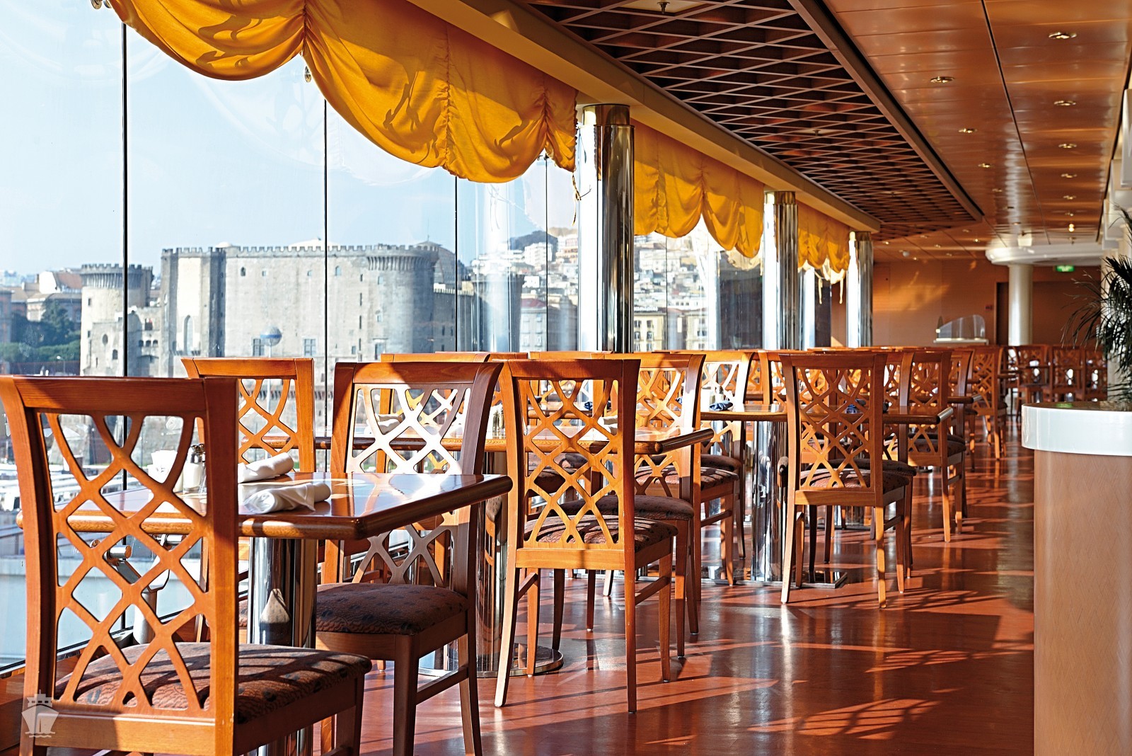 L´Oleandro- (5. paluba) s kapacitou 720 hostí. Otvorená ako voľné sedenie na raňajky 7:30-09:30 a obed 12:00-14:00. Pri večeri je zasadací poriadok a turnusy o 19:00 a 21:30.