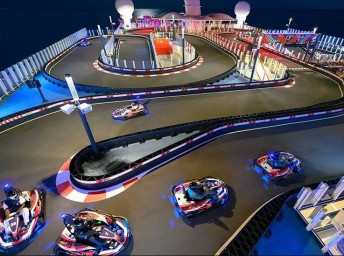 Ocean Loops - tobogan s dvojitou vývrtkou, vychádzajúci 3 m zboku lode, vo výške 48 m nad oceánom.