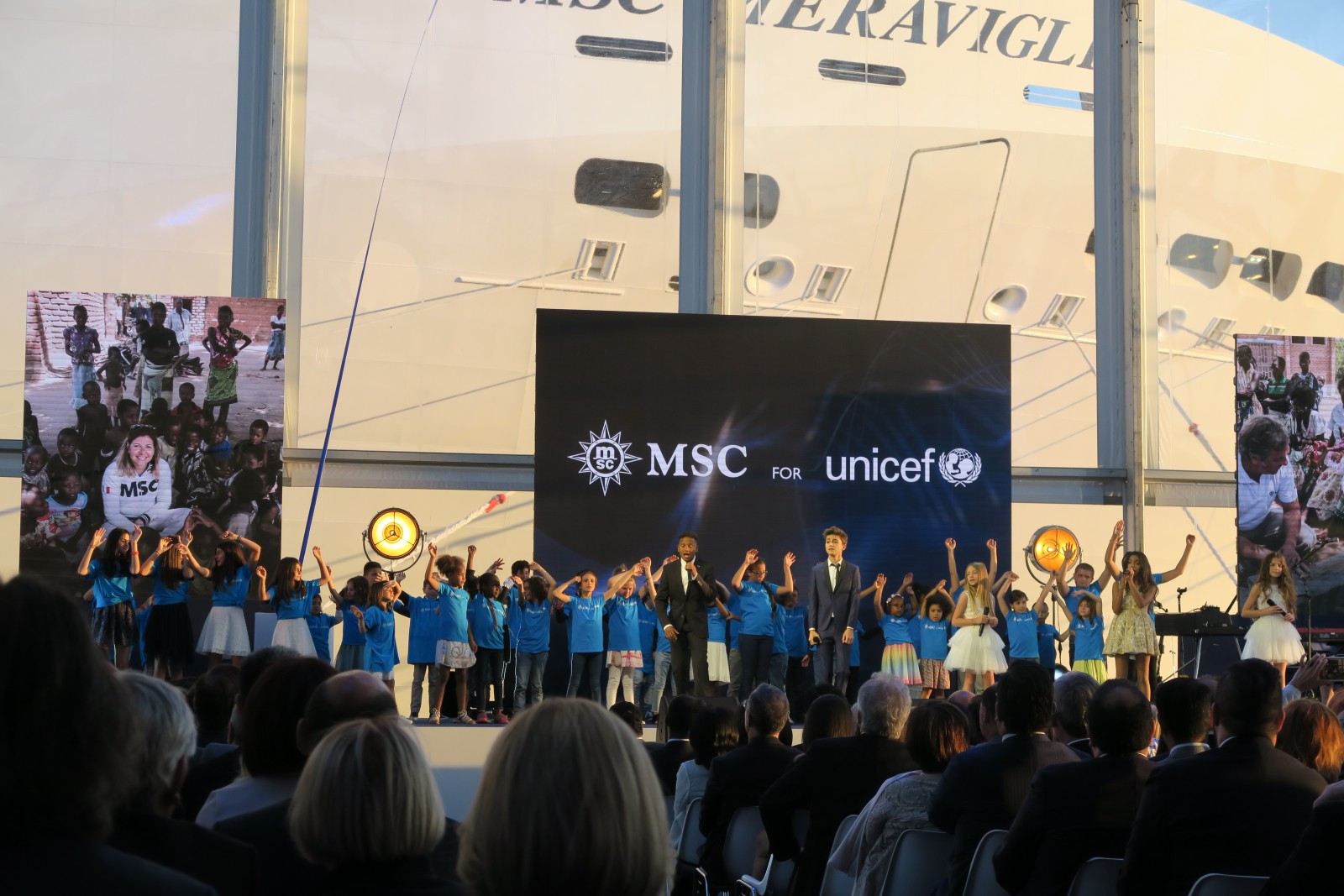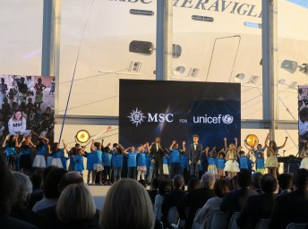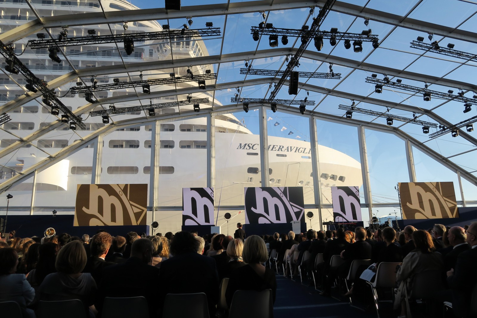 Prejav predniesli postupne Pierfrancesco Vago (výkonný prezident MSC Cruises), Laurent Castaing (generálny riaditeľ lodeníc STX France), Luc Lemonnier (nový starosta mesta Le Havre).