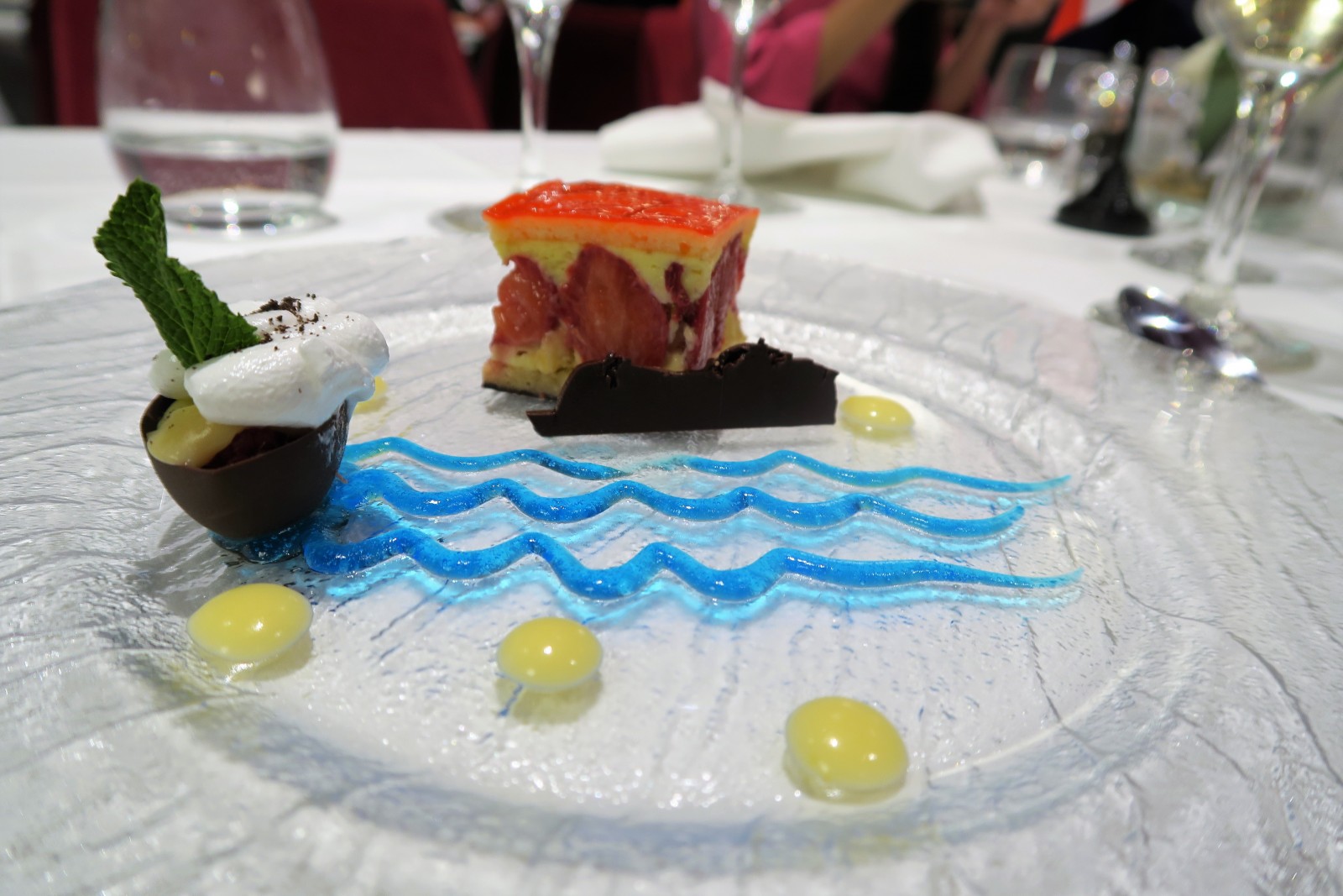 V reštauráciách na lodi bola pre všetkých prichystaná slávnostná večera Gala Dinner, zostavená francúzskou šéfkuchárkou Hélène Darroze (jej 3 reštaurácie sa hrdia 3 hviezdičkami Michelin).