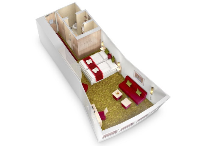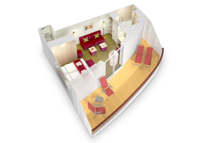 SD - Junior Suite PREMIUM od 34 m² / balkón 10 m². 7, 8, 9. paluba. Max 4 osoby. Cenový model Premium + výhody Junior Suite. 8 720 € 4 360 € za osobu
