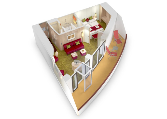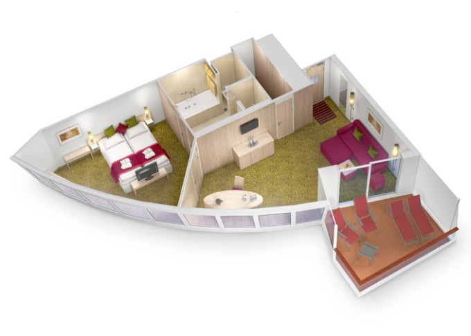 SX - Suite Panorama Deluxe PREMIUM 42 m² + balkón 12 m². Vírivka. 12. paluba. Max 4 osoby. Cenový model Premium + výhody Suite. 10 810 € 5 405 € za osobu