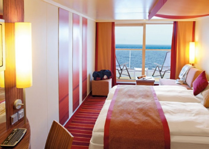 BB - Kajuta s balkónom PREMIUM od 17 m² / balkón od 3 m². 5. až 9. paluba. Max 4 osoby. Cenový model Premium. 5 950 € 2 975 € za osobu