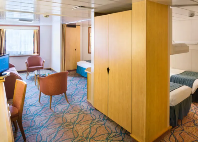 | VO - Ocean View Suite (bez balkónu) 49 m². Veľké neotvárateľné okná. Max 6-8 osôb. Výhody Suite. | 3 440 € 3 440 € za osobu |