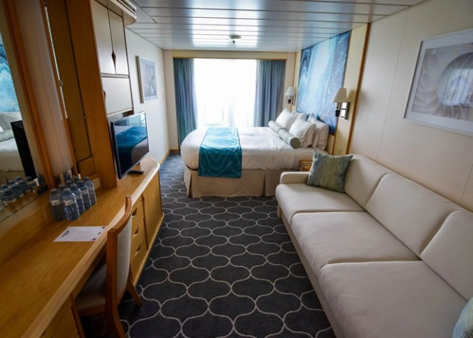| VP - Ocean View Panoramic Suite (bez balkónu) 37 m². Panoramatické neotvárateľné okná. Oddelená časť s poschodovou posteľou. Max 6 osôb. Výhody Suite. | 7 408 € 1 852 € za osobu |