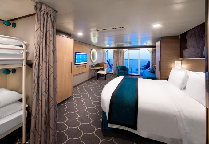 1A - Veľká kajuta s veľkým balkónom Ultra Spacious 34 m² + balkón 7 m². 11. paluba. Oddelená časť s poschodovou posteľou. Max 6 osôb. 2 376 € 1 188 € za osobu