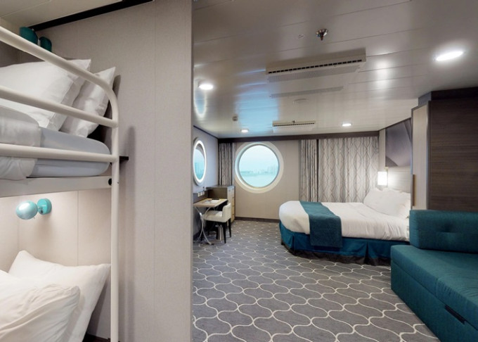1K - Veľká vonkajšia kajuta Ultra Spacious 25 m². Neotvárateľné okno. 11. paluba. Oddelená časť s poschodovou posteľou. Max 6 osôb 1 974 € 1 974 € za osobu