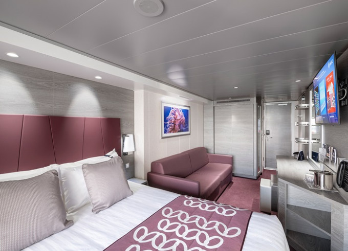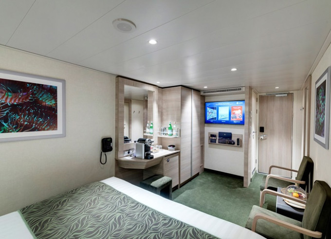 Vo všetkých kajutách sa nachádza regulovateľná klimatizácia, safe, kúpeľňa so sprchou, sušič na vlasy, telefón, interaktívna Tv s plochou obrazovkou, minibar. Oddelené postele sa na požiadanie dajú spojiť do manželskej.